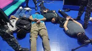 وفي لقطات تم تداولها على مواقع التواصل الاجتماعي، ظهر أشخاص يغطون وجوههم بالأقنعة ويأخذون الموجودين في الاستوديو كرهائن ويضعون متفجرات في جيب المذيع.