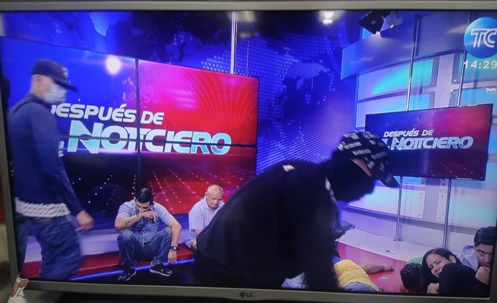 وبحسب ما ورد في صحف محلية ، تعرض استوديو القناة التلفزيونية المملوكة للدولة “TC Television” في مدينة غواياكيل لاقتحام من قبل مجموعة مسلحة خلال بث مباشر.