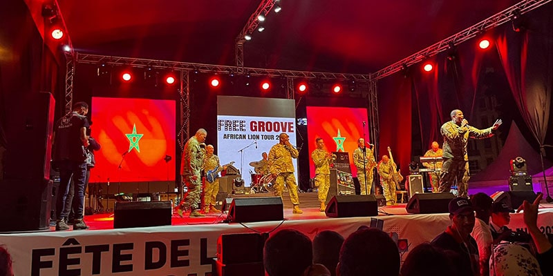 وفي تصريح لوكالة المغرب العربي للأنباء، على هامش الحفل، قال الملحق الصحافي بالسفارة الأمريكية بالرباط، جيروم شرمان، إن هذا الحفل الموسيقي يأتي في إطار عودة أكبر مناورات عسكرية في إفريقيا “الأسد الإفريقي”، مضيفا أن فرقة “فري غروف” التقت هذه المرة مع جماهير عريضة خلال جولتها بالمغرب، عكس المرة الماضية بسبب قيود جائحة كورونا.