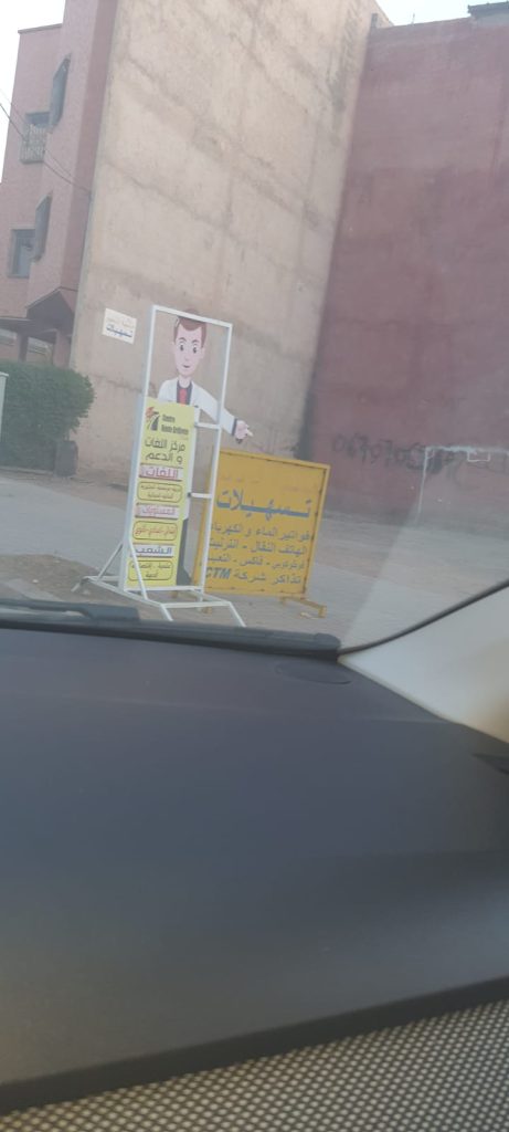 اختار الأستاذ لمركزه اسم الطريق اللامعة route brillante وقام بشييد بناء إشهاريا بباب المنزل “المركز” فوق الرصيف مانعا الراجلين من المرور، ورصع الشوارع الرئيسية بأسكجور بلوحات إشهارية واضعا هاتفه الشخصي للتواصل تحت أعين السلطة المحلية التي أضحت تلعب دور المتفرج.