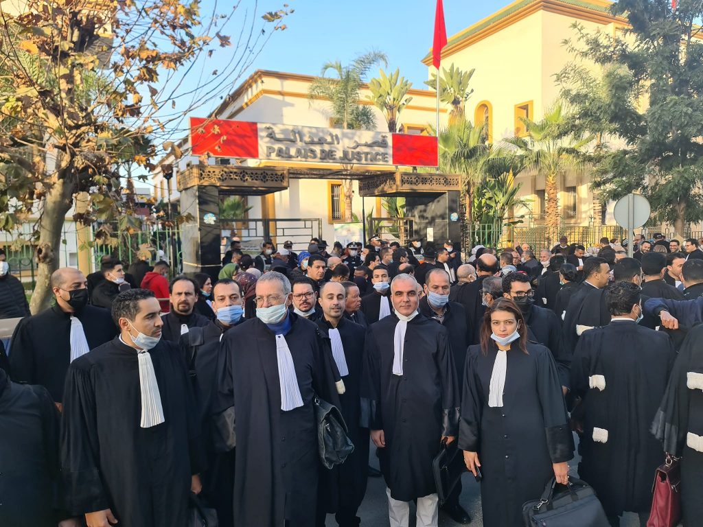 ودعت الجمعية في ذات بلاغها، أن على السيدات المحاميات والسادة المحامين إلى “التعامل طبقا للقانون ولما تقتضيه روح التضامن والرجوع إلى مؤسساتهم المهنية، عند كل حالة منع أو تضييق على الحق في الولوج إلى المحاكم”.
