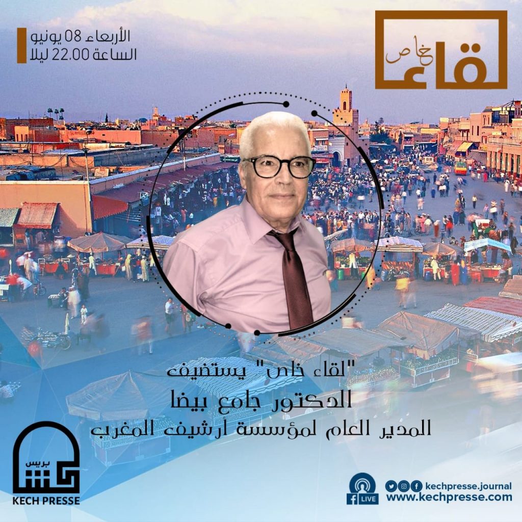 يلتقي جمهور “كش بريس” ومتتبعو برامجه، مع حلقة جديدة من برنامج (لقاء خاص)، مع المدير العام لمؤسسة أرشيف المغرب، المؤرخ الدكتور جامع بيضا، يومه الأربعاء 08 يونيو الجاري الساعة العاشرة 22.00 مساء.