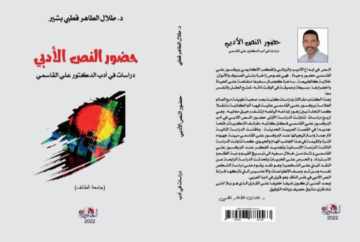 صدر حديثا عن جامعة الطائف بالخرطوم السودان، مؤلف جديد تحت عنوان (حضور النص الادبي: دراسات في أدب الدكتور علي القاسمي) للأديب السوداني الدكتور طلال قطبي، استاذ النقد الادبي الحديث .