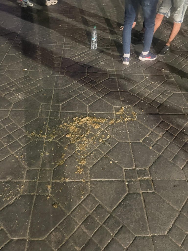 ملحوظة : في ظل هذا المشهد البئيس، يتم تنظيم المهرجان الوطني للفنون الشعبية وسط ساحة جامع الفنا ولا أدري ما إذا كان وزير الثقافة على علم بتعايش روائح البول والبؤس الذي يعم المكان مع نظرته وتصوره للثقافة والفنون ؟