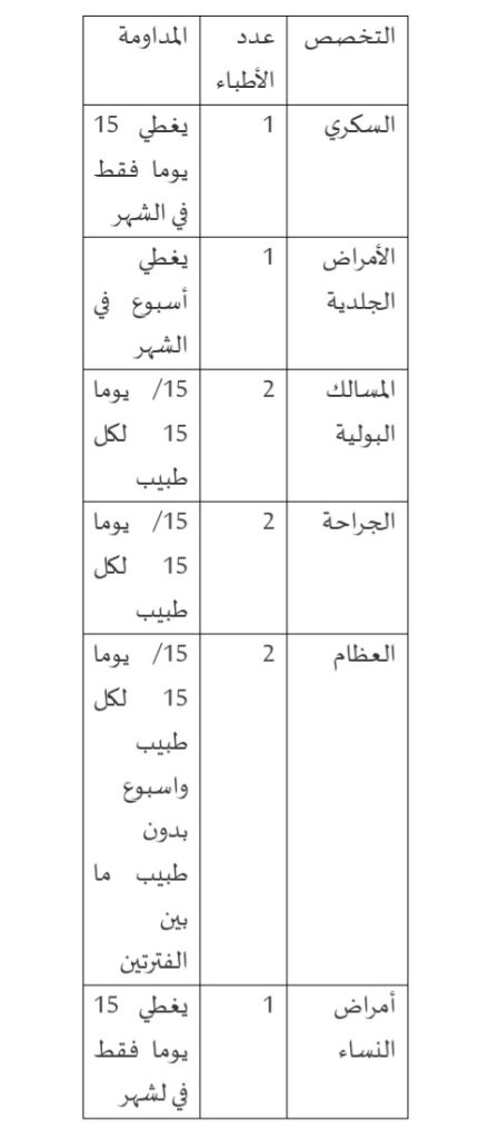 - لا يوجد طبيب بالمدينة تابع لوزارة الصحة منذ أكثر من ثلاثة أشهر؛
