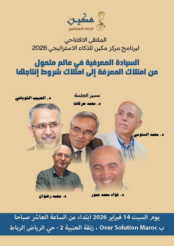 ينظم مركز مكين، في إطار الملتقى الافتتاحي للذكاء الاستراتيجي 2026، مائدة فكرية جهوية تحت عنوان: