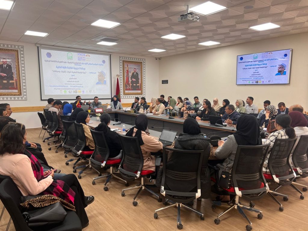 (كش بريس/قلعة السراغنة)ـ في إطار فعاليات المؤتمر الدولي الأول حول “التكنولوجيا الرقمية وصون الهوية والثقافة الوطنية”، المنعقد أيام 20 و21 و22 نونبر 2025 بمدينة قلعة السراغنة، احتضنت كلية الحقوق يوم الخميس 20 نونبر ورشة تدريبية متخصصة لفائدة الطلبة تحت عنوان: “ثورة الرقمنة البصرية: أدوات، تقنيات، وسياقات”، من تأطير الفنان والمخرج الأستاذ خالد المعتمد.