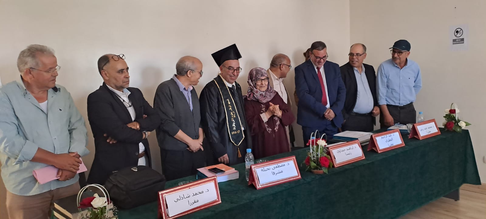 وبعد مناقشة أطروحة الباحث وإبداء مختلف الملاحظات قررت اللجنة منح الباحث درجة الدكتوراه في علوم الآثار والتراث ش الأنثروبولوجيا بميزة مشرف جدا مع التنويه ..