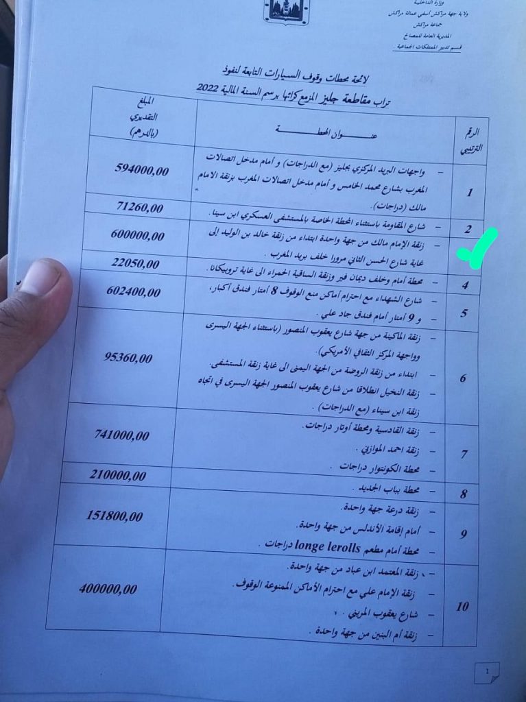 أثارت اللائحة التي تم الإعلان عنها من قبل مصالح المجلس الجماعي لمراكش، والخاصة بمحطات وقوف السيارات التابعة لنفوذ تراب مقاطعة جليز المزمع كراؤها برسم السنة المالية 2022، جدلا كبيرا، خاصة وأن بعضا من محطات معلومة، لم يتم الإعلان عنها، رغم وجود أشخاص يستغلونها.