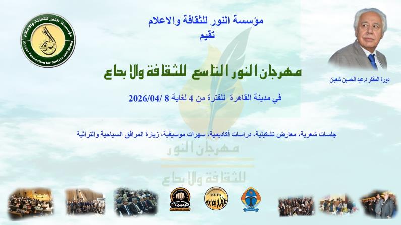 كش بريس/خاص ـ تتهيأ القاهرة لاحتضان الدورة التاسعة من مهرجان النور، في موعد ثقافي جديد يجمع أدباء وفنانين ومفكرين من بلدان عربية وأوروبية، ضمن برنامج يمتد لخمسة أيام ويطمح إلى توسيع فضاء التلاقي بين التجارب الإبداعية المتعددة.