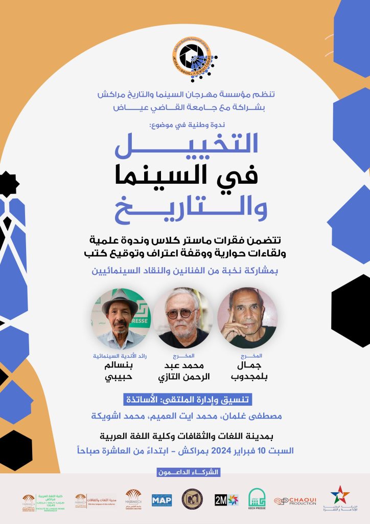 (كش بريس/خاص) ـ تنظم مؤسسة مهرجان السينما والتاريخ بمراكش، بشراكة مع جامعة القاضي عياض بمراكش، ندوة وطنية كبرى في موضوع” التخييل في السينما والتاريخ” يومي 10 و11 فبراير 2024 .