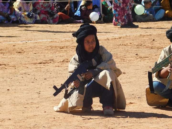 وأشار الموقع الإخباري إلى مقطع فيديو نشر على مواقع التواصل الاجتماعي يظهر أطفال منطقة تندوف، مجندين ومؤطرين عسكريا، وهم يحملون أسلحة نارية.