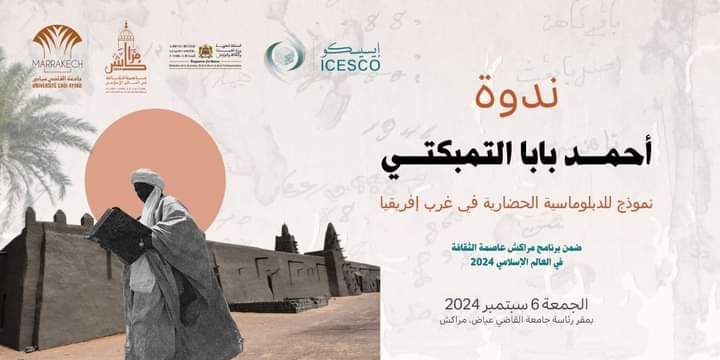 (كش بريس/ خاص) ـ تنظم إيسسكو بشراكة مع جامعة القاضي عياض بمراكش، في إطار برنامج مراكش عاصمة الثقافة في العالم الإسلامي 2024، ندوة دولية في موضوع “أحمد بابا التمبكتي نموذج للدبلوماسية الحضارية في غرب افريقيا بمراکش” وذلك يوم الجمعة 06 شتنبر 2024 على الساعة التاسعة صباحاً بمقر جامعة القاضي عياض بمراكش.