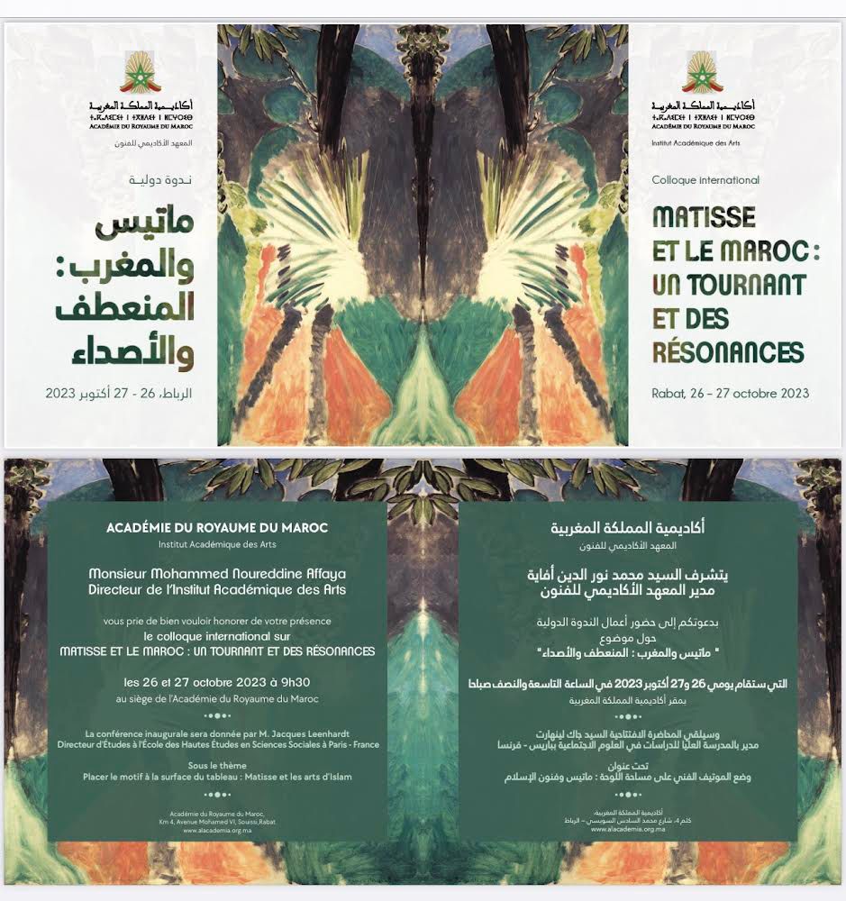 ينظم “المعهد الأكاديمي للفنون”، التابع لأكاديمية المملكة المغربية، ندوة فكرية دولية حول موضوع: “هنري ماتيس والمغرب: المنعطف والأصداء”، وذلك يومي 26 و27 أكتوبر 2023 بمقر الأكاديمية بالرباط. وسيشارك في هذا اللقاء كبار المتخصصين في الأعمال التشكيلية لهذا الفنان العالمي الذي شكلت زيارتاه لمدينة طنجة، سنتي 1913-1912، مرحلة مفصلية في مساره الفني، وفي تجديد أسلوبه الإبداعي، وتركت آثارا ظاهرة على تاريخ الممارسة التشكيلية العالمية والوطنية.