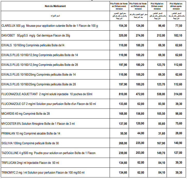 كما صادق القرار أيضا على أسعار بيع ثمانية أدوية جنيسة، تراوحت بين 17 درهما و 4 آلاف و644 درهما، كما أشر على تخفيضات في أسعار 15 دواءا، أبرزها تخيض يخص دواء FLUCONAZOLE AGUETTANT الذي انتقل ثمنه من 810 دراهم إلى 472 درهما.