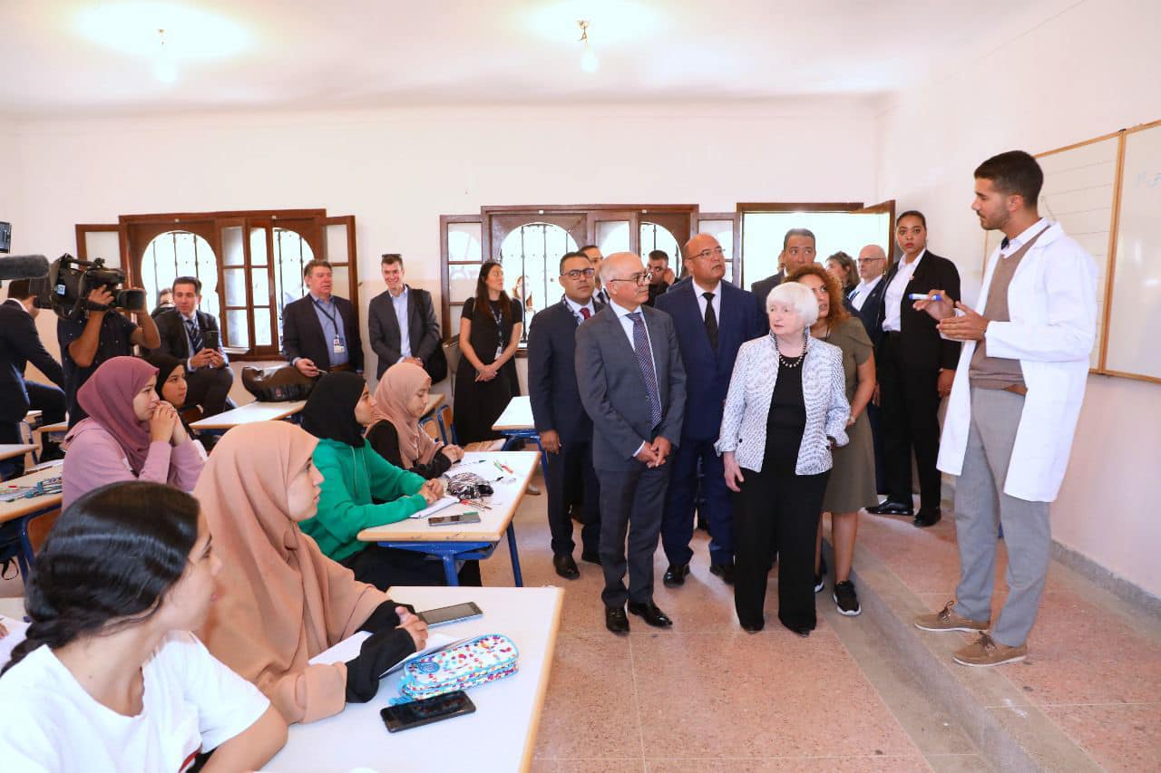 (كش بريس/خاص) ـ زارت اليوم الثلاثاء، وزيرة الخزينة الأمريكية جانيت يلين، رفقة وزير التربية الوطنية والتعليم الأولي والرياضة شكيب بنموسى، ثانوية ابن يوسف بمراكش، وذلك على هامش الاجتماعات السنوية لمجموعة البنك الدولي وصندوق النقد الدولي المنعقدة بمدينة مراكش ما بين 09 و15 أكتوبر 2023.