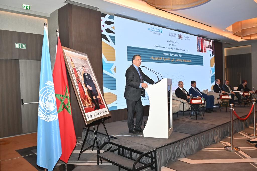 نظمت وزارة العدل بشراكة مع هيئة الأمم المتحدة للمساواة بين الجنسين بالمغرب يومه الخميس 27 أكتوبر 2022، بفندق ماريوت بالرباط وعبر التناظر المرئي، ندوة وطنية في موضوع ” المساواة والعدل في الأسرة المغربية”، حضرها وشارك فيها كل من السيد الرئيس الأول لمحكمة النقض، الرئيس المنتدب للمجلس الأعلى للسلطة القضائية و السيد الوكيل العام للملك لدى محكمة النقض، رئيس النيابة العامة، والسيد الأمين العام للمجلس العلمي، والسيد رئيس المجلس الاقتصادي والاجتماعي والبيئي ، والسيدة ممثلة هيئة الأمم المتحدة للمساواة بين الجنسين بالمغرب.