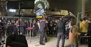 وأظهر المقطع المصور الذي نشرته “يديعوت أحرنوت”، محاولة المحتجين الوصول إلى مقدمي البرنامج، قبل أن يتدخل عناصر الأمن وطاقم الإنتاج لإخراجهم من المكان.