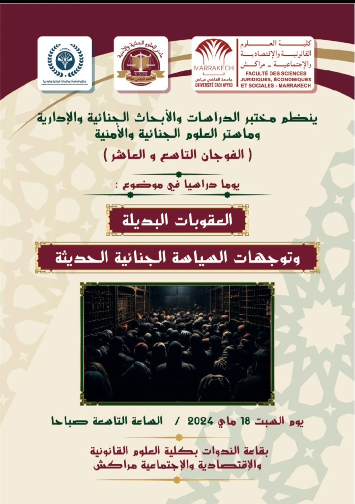 واختير كعنوان لهذا اليوم الدراسي موضوع “العقوبات البديلة وتوجهات السياسة الجنائية”