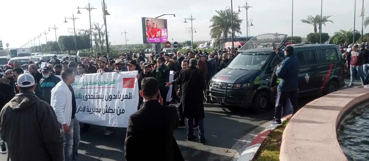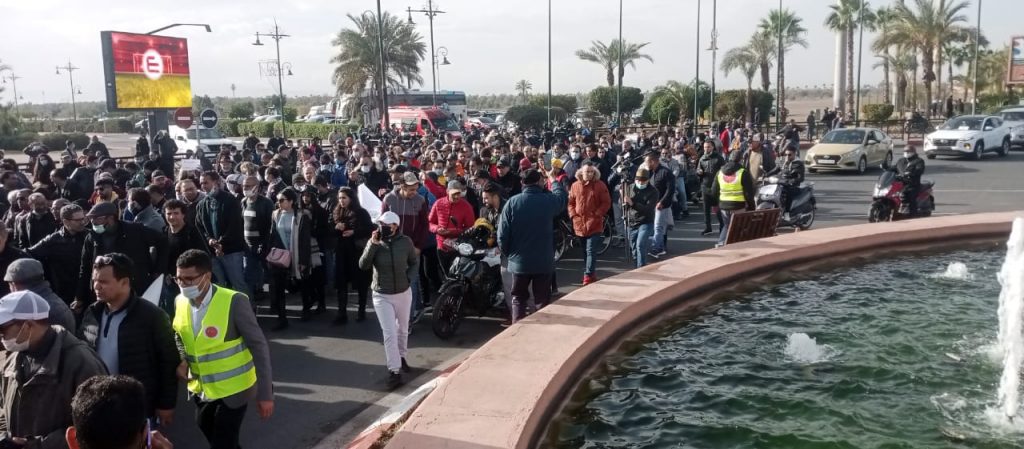 تجمع صباح يومه الأربعاء بباب الجديد بمراكش مهنيو القطاع السياحي بالمدينة، مستنفرين خوض مسيرة احتجاجية قطعت مجموعة من الشوارع الرئيسية باتجاه مقر ولاية جهة مراكش آسفي.