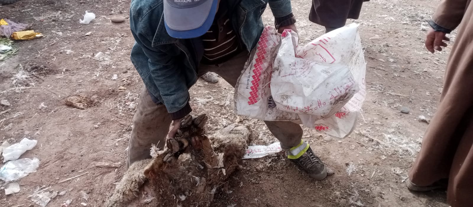 شوهد صباح اليوم، بالسوق الأسبوعي سبت بنساسي نواحي مراكش، شخص خمسيني وهو يحمل نعجة نافقة، من أجل بيعها لمجهولين، حسب مصادر متطابقة.