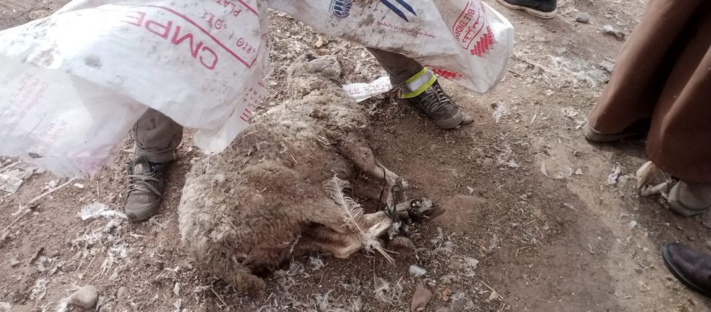 وحاول موقعنا التقاط صور مأساوية عن طريقة تعامل المعني بالأمر مع النعجة النافقة، ومتابعة الناس لذلك، في مشهد يشي بالوحشية وانعدام الإحساس.