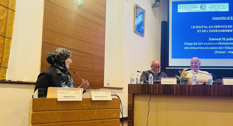 كما تم التطرق لمسألة “الرقمنة: أداة لتعليم وتعميم اللغة الإنجليزية”، بمشاركة كل من محمد ملوك، أستاذ باحث بكلية علوم التربية جامعة محمد الخامس – الرباط، عبد الله يوسفي، رئيس الجمعية المغربية لأساتذة اللغة الإنجليزية، بشري أعريف، المديرة الإقليمية للتربية الوطنية أنفا الدار البيضاء، فهمي المدني، الكاتب العام للجمعية المغربية لأساتذة اللغة الإنجليزية.